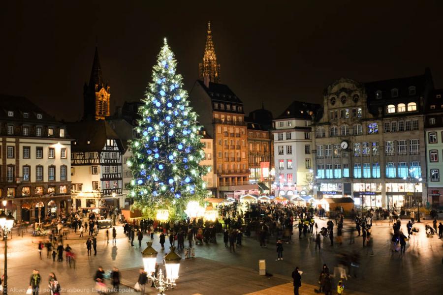 Vous pourrez y découvrir plusieurs temps forts, dont notamment le Village du partage situé sur la célèbre place Kléber… qui abrite aussi le grand sapin !