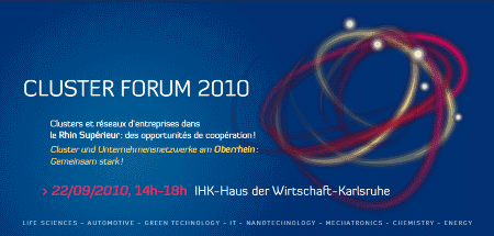 Clusters et réseaux d'entreprises dans le Rhin Supérieur : des opportunités de coopération ! Une centaine de personnes se sont déjà inscrites pour participer au 2nd Cluster Forum qui aura lieu le 22 septembre à Karlsruhe.