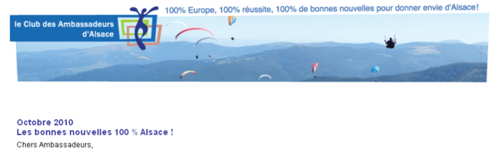 - Devenir Ambassadeurs d'Alsace : cliquez ici (vous êtes alors automatiquement abonnés à notre newsletter. Une option vous permet toutefois de vous désabonner.)