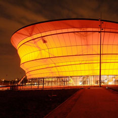 Des câbles d’acier cintrent vers l’intérieur la ceinture orange et translucide imaginée par Fuksas. Longues de 440 m avec une tolérance de 20 mm malgré l’absence de joints de dilatation, ces cerces, inscrites dans des plans elliptiques, obliques et hétérogènes, tiennent grâce à 420 bracons arrimés à la charpente par 26.000 boulons.