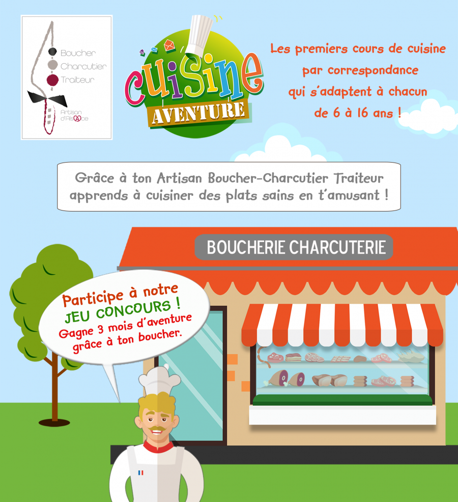 C’est directement dans chaque boucherie-charcuterie participante que les enfants pourront gagner des abonnements de 3 mois à Cuisine Aventure. Ces derniers pourront ainsi apprendre à cuisiner des plats sains et équilibrés chez eux, grâce au colis envoyé chaque mois par l’équipe de Cuisine Aventure !